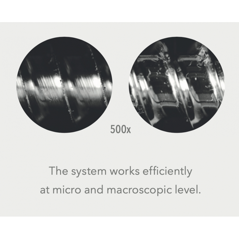 založené na patentovanej technológii na povrchovú úpravu kovových zliatin pre priemysel. Poskytuje riešenie pre priemyselné kovy a zliatiny. Zariadenie siaha od brúsenia, zaoblenia a odhrotovania až po vyhladenie povrchu a leštenie vysoko presných a estetických dielov vo vysokom lesku. Je schopný spracovávať zložité geometrie bez toho, aby na povrchu vytváral mikroskopické škrabance.
