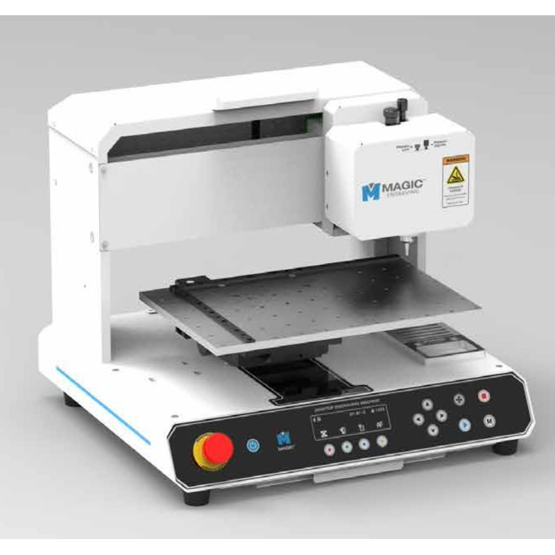 MAGIC-E4 je viacúčelový stolný gravírovací stroj 3. generácie, ktorý je skonštruovaný na dosiahnutie vynikajúcich, vysoko kvalitných a presných výsledkov gravírovania, rezania a značenia na akryl, rôzne druhy plastov, sklo, drevo, zlato, striebro, mosadz, nerezovú ocel, hliník atď.