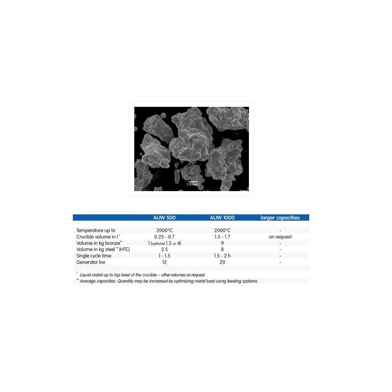 Až 9 kg bronzu alebo ocele na cyklus (v závislosti od verzie).