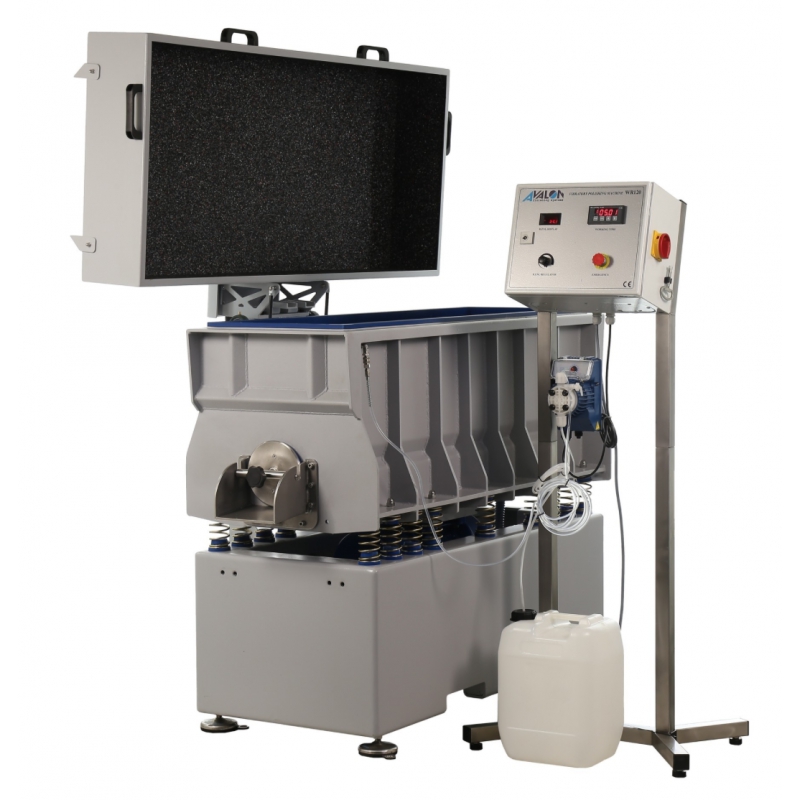 Vibračné omielacie zariadenie slúži na povrchové hromadné opracovanie kovových aj nekovových výrobkov. Je vhodné na odhrotovanie, zaobľovanie, obrúsenie, odihlovanie,povrchové čistenie. Spracovanie prebieha keramickými, plastovými.Tieto vibrátory sa odlišujú od ostatných zariadení tvarom žľabu pracovnej komory, čo umožňuje spracovanie detailov rôznych tvarov, najmä dlhých prvkov.