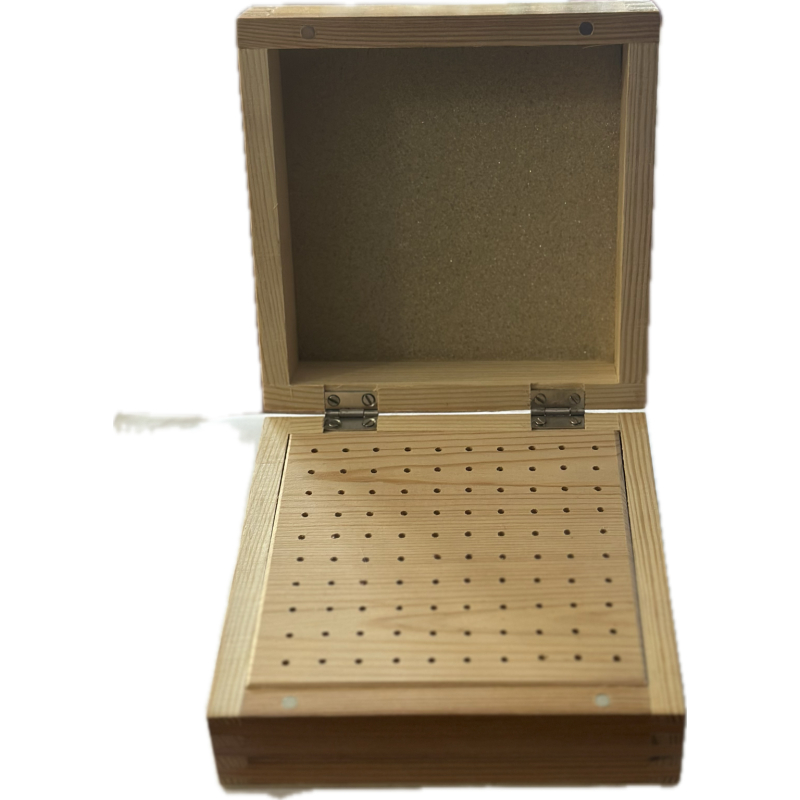 Zásobník na 100ks fréz alebo vrtákov v tvare drevenej krabičky s magnetickým uzatváraním.